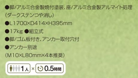 ふりがな:あるみせいすぽーつべんち(せなし)