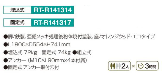 商品名:ベンチ(座/再生擬木) 背付き・固定式