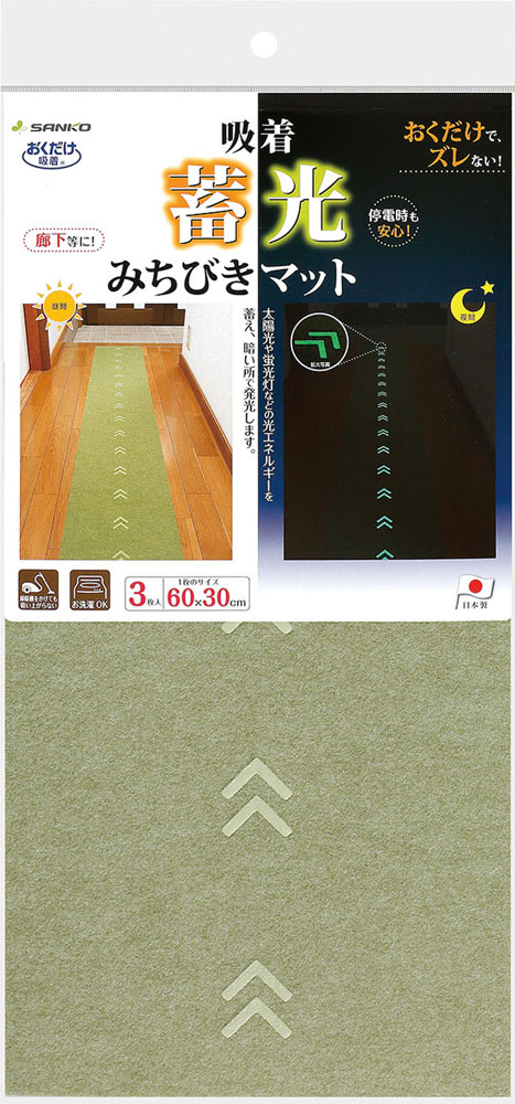 商品名:吸着蓄光みちびきマット 3枚入 グリーン