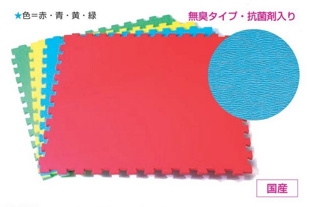 1枚サイズ1m角 厚15mm、材質=オレフィン特殊樹脂発泡体 抗菌剤入り 表面エンボス加工仕上