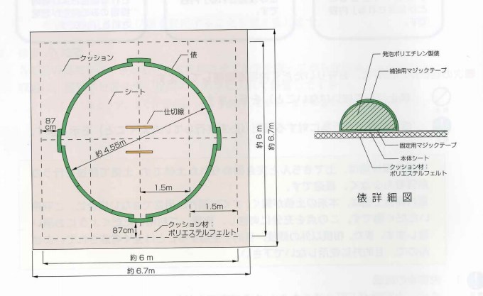 規格:土俵本体シート6.7m 土俵は直径4.5m 合計約87㎏