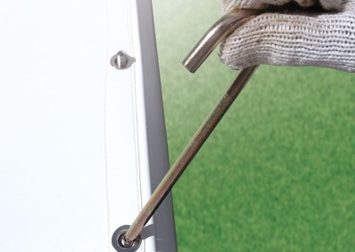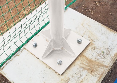 ※写真はテントシェルターのものです。テントシェルターベース式は柱下部にベースプレート加工が施されています。