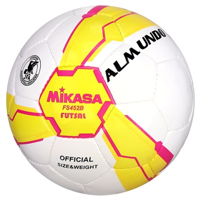 商品名:フットサル4号手縫い 検定球 黄ピンク